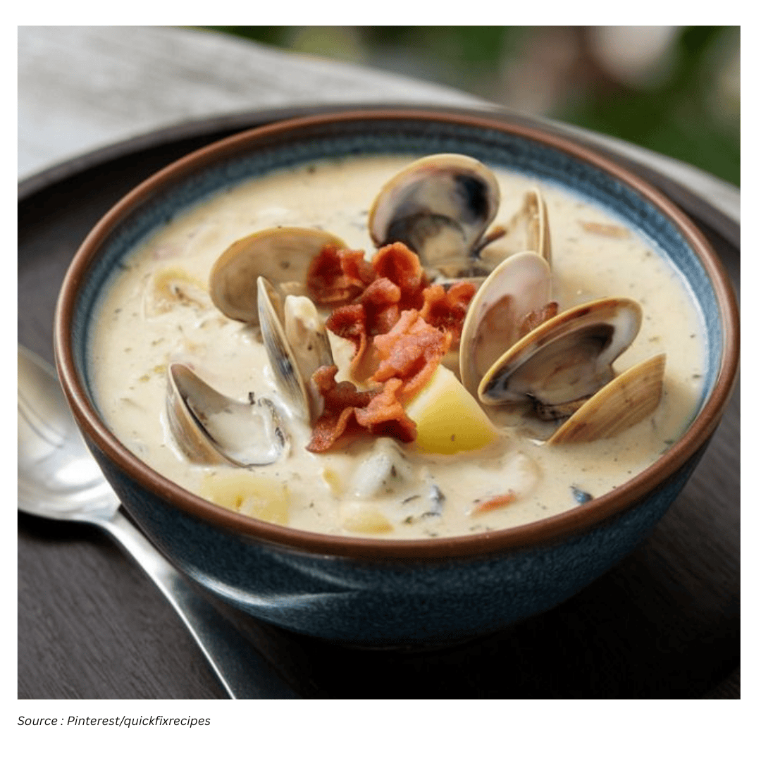 To see the contrast, consider other well-known regional styles. Manhattan clam chowder uses a tomato-based broth and skips dairy. Rhode Island clam chowder stays clear and briny. Long Island clam chowder combines both tomatoes and cream. The New England approach, by comparison, is all about a velvety base and generous pieces of vegetables and seafood.